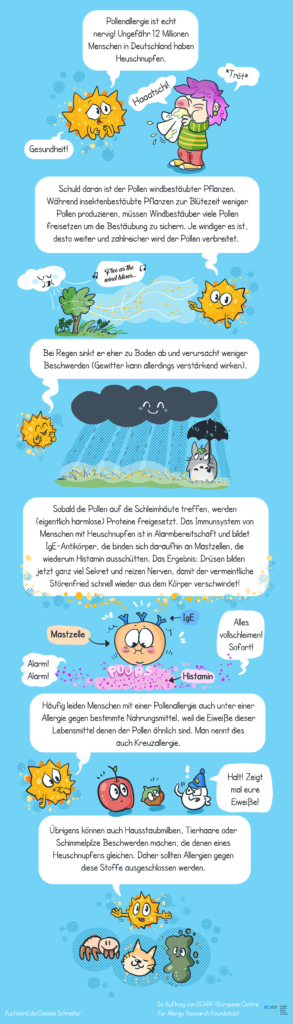 Pollenallergie ist weit verbreitet. Warum AllergikerInnen reagieren, erklärt unser Comic verständlich.